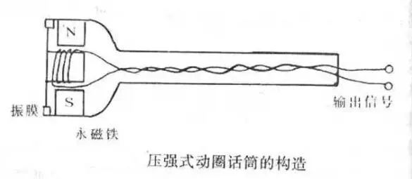 在话筒的振膜上粘有线圈 , 线圈放在磁铁的两极之间。当把话筒放在声场中时,振膜随着声波振动 , 线圈即在两磁极间运动切割磁力线 , 从而把声波转变成微小的电流 , 再经过变压器向放大器或调音台输出。