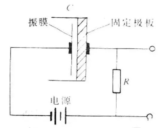 极头有振膜和底极极 , 振膜 和底极板构成电容器的两个极 , 当把话筒放在声场中时 , 声波使振膜振动 , 于是两极的距离随声波而变 化 , 从而改变电容量