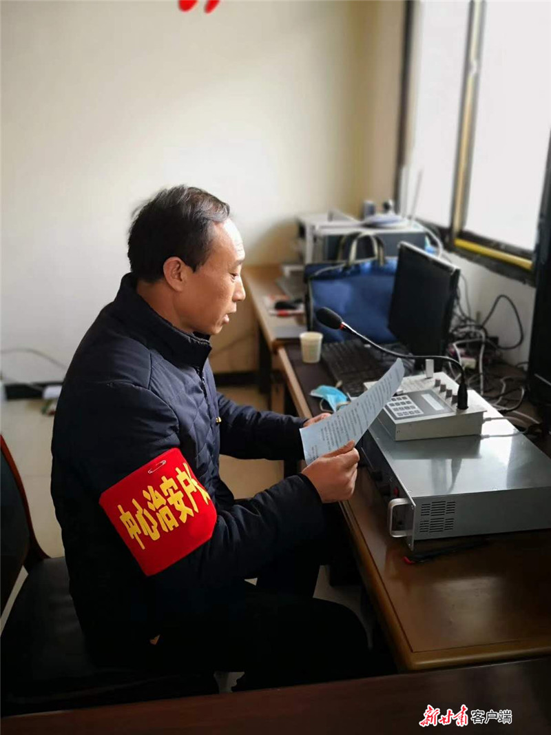张家川县张川镇赵川村党支部书记通过应急广播播出疫情防控文件内容