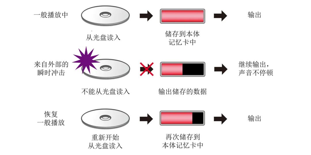 同时为了稳定音频信号的输出,TASCAM设计了10秒的电子防震,可防止因振动而导致的声音跳动,数据存储在本机的存储器中,即使发生长达10秒的振动,也勿须担心会停顿,高质量的内部时钟保障了声音的流畅和低抖动。