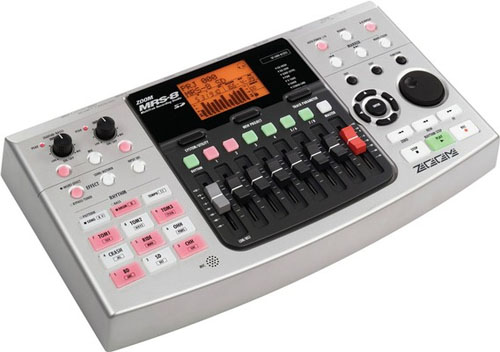 Zoom 的新款 MRS-8 是一款 8 音轨的数字工作站,每个音轨有 10 个虚拟音轨,带调音台、多重效果器,能 2 个音轨同时录音,有一个 128MB 的 SD Media Cards 音频卡,能 8 个音轨同时重放。
