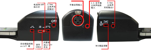 3)插入话筒,戴上耳机, 就可以在线传输15K 音频信号; 或者通过iphone触摸屏操作按键录音;用FTP传输录音信号。