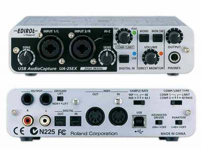 搭载高质量电子原件的UA-25EX,具有24-bit/96KHz的声音输入/输出质量。EDIROL将专业录音室内所需求录音规格配备全部纳入在这个金属所包覆的机体当中。不用外接电源,只要用USB连接,您的计算机马上就变成一个专业的录音室。
