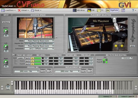 GVI是Giga Virtual Instrument的简称,也就是插件版的GigaStudio。而CVPiano则是Continuous Velocity Piano(持续力度钢琴)的简称,一个用GVI做外壳的插件,利用GVI的采样引擎的钢琴插件,支持VSTi和RTAS格式,当然你也可以独立运行CVPiano,但你没可能用CVPiano去加载其它GVI音色或是Giga音色,因为它只能回放。