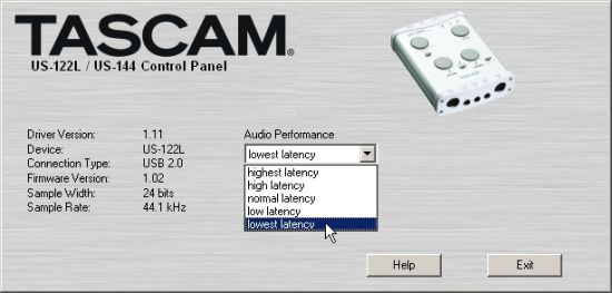 US-122L和US-144的ASIO缓冲完全一样,没有区别。不过最低延迟加在一起几乎达到9ms,让我非常疑惑,怎么一块USB 2.0的音频接口却有着USB 1.1一般的ASIO延迟时间?很显然US系列的ASIO性能并不好,也许Tascam是为了优化GSIF 2而不得不舍弃ASIO?