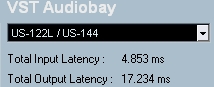 US系列把ASIO缓冲分为5个级别:最低、比较低、一般、比较高和最高(如图11),在最低缓冲时输入/输出延迟如图12。换为一般缓冲后延迟如图13。