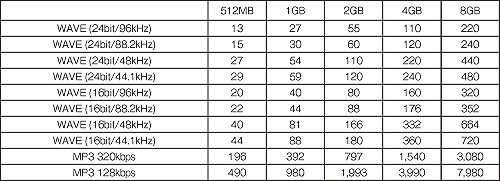 R-09HR各種模式SD卡最大錄音時間(單位:分)