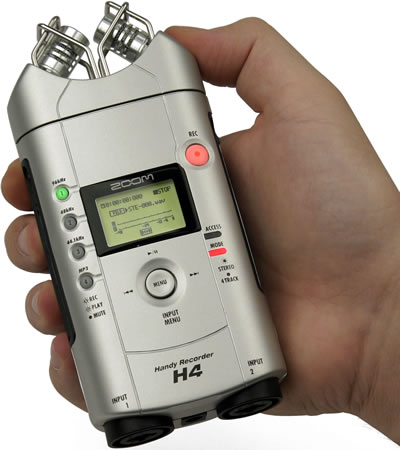 Zoom H4 数位录音机约符合手掌尺寸,是一款可用于录製现场音乐表演、採访、Podcasts、会议、课程或是研讨会等场景中使用的随身装置。H4 可提供您录製 24 位元 / 96 kHz 的 MP3 数位音效格式,最高可达 320 kbps。
