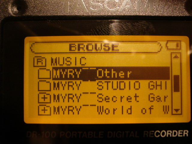 DR-100的系统设定中有File name format的选项,意思是你必须设定一个词(Word),比如我设定的是MYRY~~,设定了这个词以后,你的自定义文件夹名必须由MYRY~~开头机器才能识别。子文件夹命名则不受此限制。