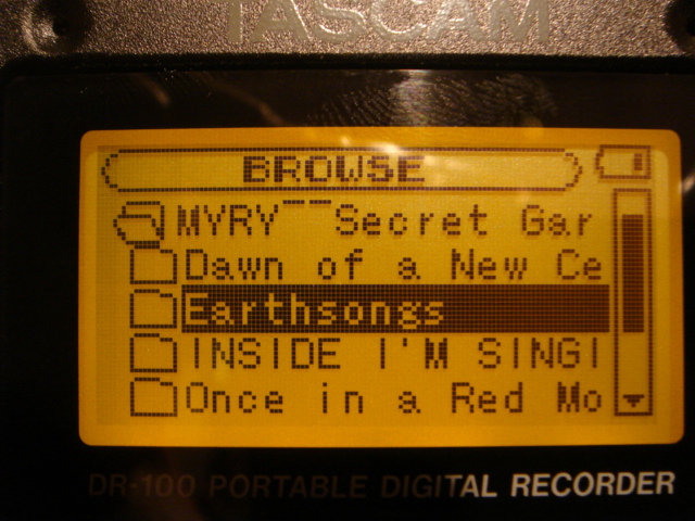 DR-100可以通过菜单浏览根目录/自定义文件夹/子文件夹内的文件,可以通过滚轮快速选择文件夹或者歌曲,速度取决于你的APM,这一点很人性化,和ipod的滚轮类似,比D50一下下按快进快退那是方便很多了。