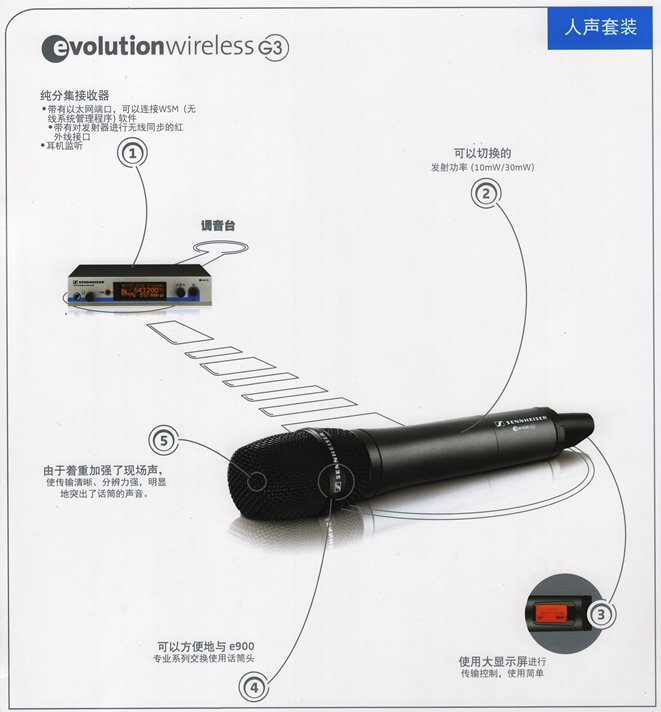 为最好的evolution手持无线发射机配上最好的话筒头。全部500系列手持无线话筒均配有来自成功的森海塞尔evolution 900系列的可更换的话筒头,这将智能化的G3无线功能与强力透彻的声音结合到一起。可选购的充电电池可以通过外部充电触点进行充电。G3 无线技术与evolution 900 系列话筒头的默契配合确保了您的歌唱以最好的质量传递给听众。