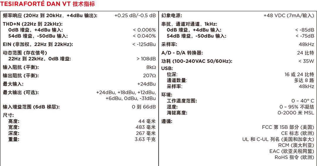 •2个千兆以太网端口:Dante数字音频和Tesira控制