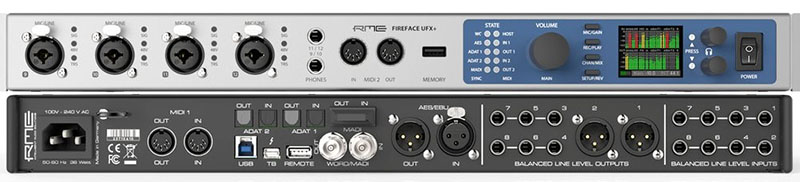 Fireface UFX+包含了以前旧款产品所不具有的新特性:MADI I/O——实现了188通道I/O(比Fireface UFX多了128个通道),用于无延迟路由的强大的DSP,以及针对所有通道的广泛的动态和效果处理。Fireface UFX+同时具有USB 3.0、雷电以及可选的新款远程控制器ARC USB。这意味着它可以同时用于Mac OS X®和Windows®,且支持热插拔。这使RME Fireface UFX+成为多轨录音、混音和监听的新标准。