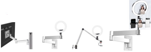 组合将是一个全新的创新,随着当前视频/网络直播的兴起,直播系统需要更多的支架,如:灯光支架、手机平台支架、显示器支架等等,如何管理安装好这些支架,已是广播工程人员头疼的事,我们的组合支架由此应用而生,可以将话筒架,显示器架,灯光架,手机架全部集成与一个支架中。